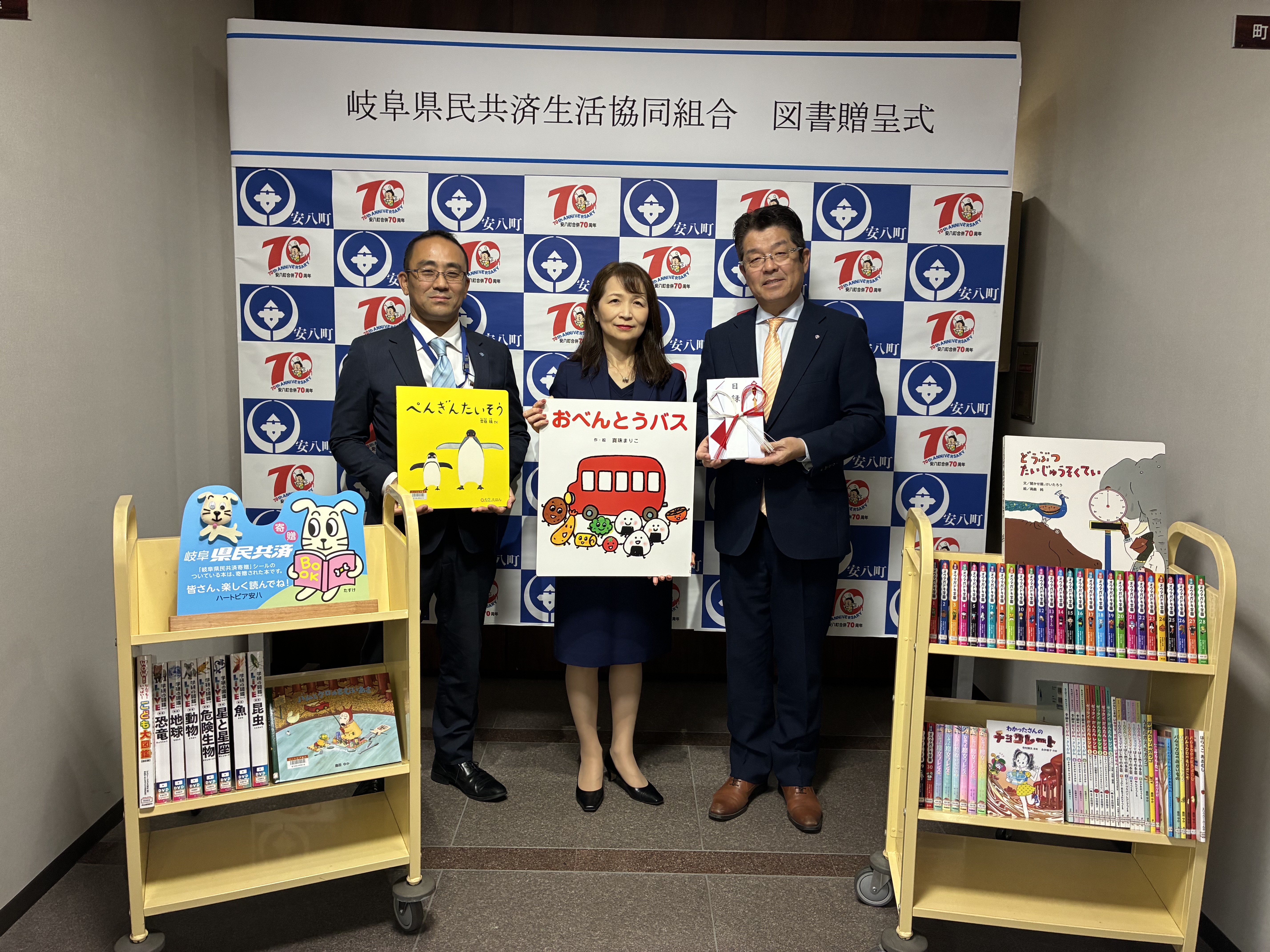岐阜県民共済では、社会貢献活動の一環として県内の図書館に子ども向け図書等を寄贈しています。 8年目となる今期は、岐阜県図書館に272冊、岐阜市中央図書館に391冊、輪之内町・白川町・安八町・御嵩町・関ケ原町・揖斐川町の各図書館に371冊と備品を寄贈しました。これをもちまして、岐阜県に図書館のあるすべての市町(21市13町)に図書等を寄贈したことになり、累計冊数は5,200冊を超えました。 たくさんの本に囲まれた環境で、子どもたちの夢と希望が育つことを願い、お役立ていただければ幸いです。